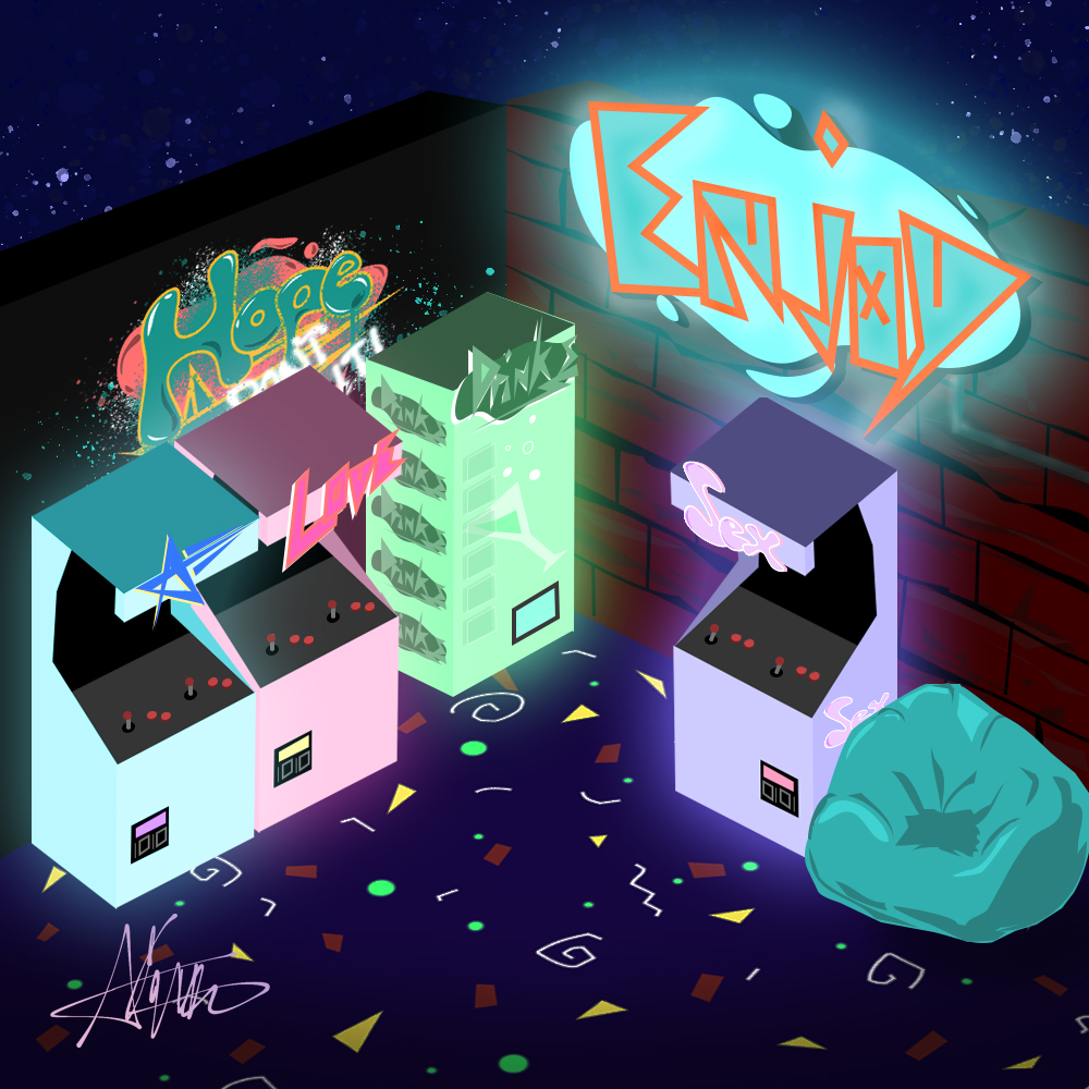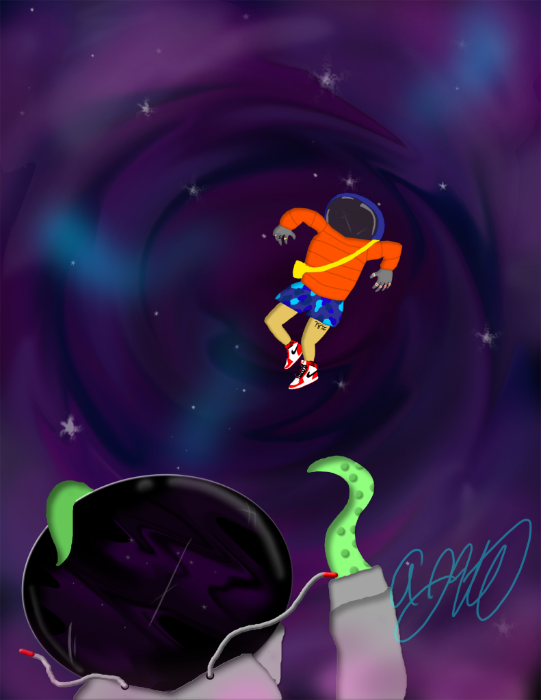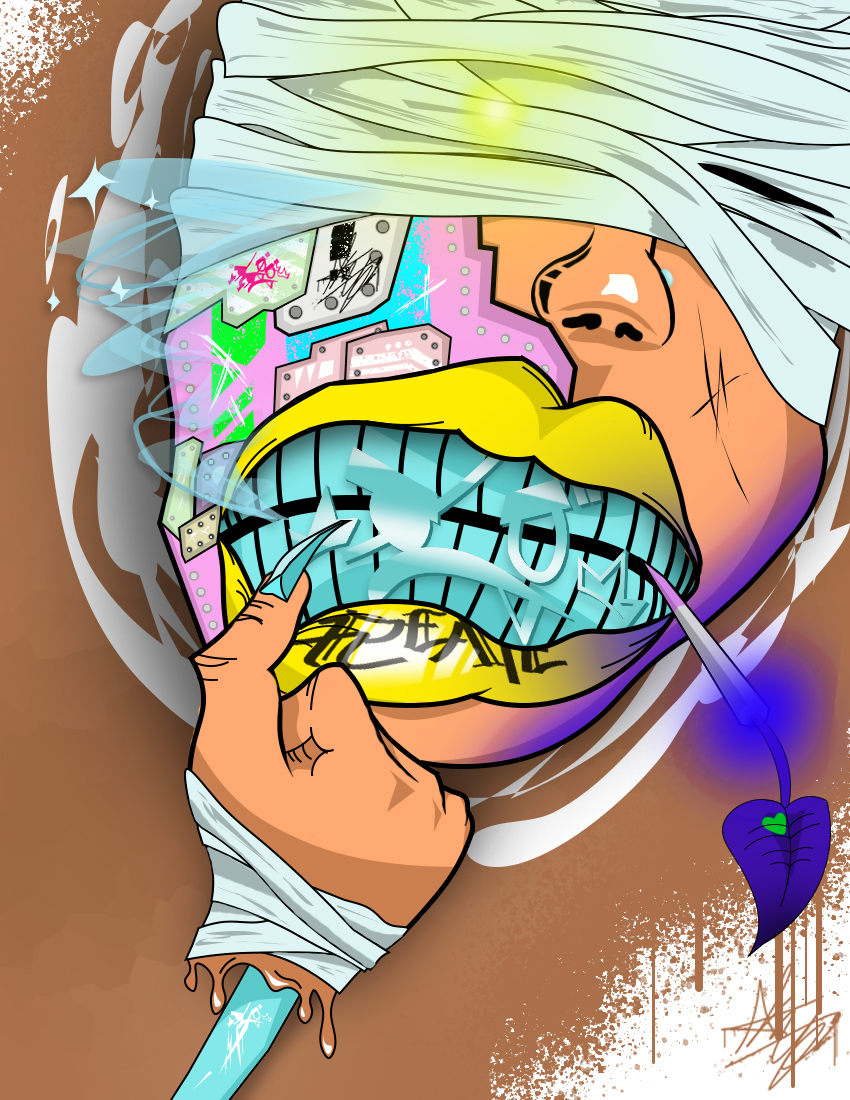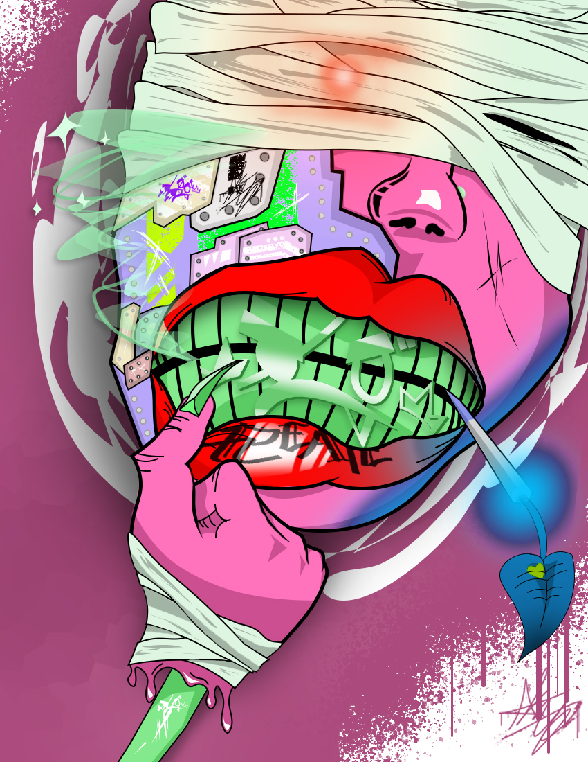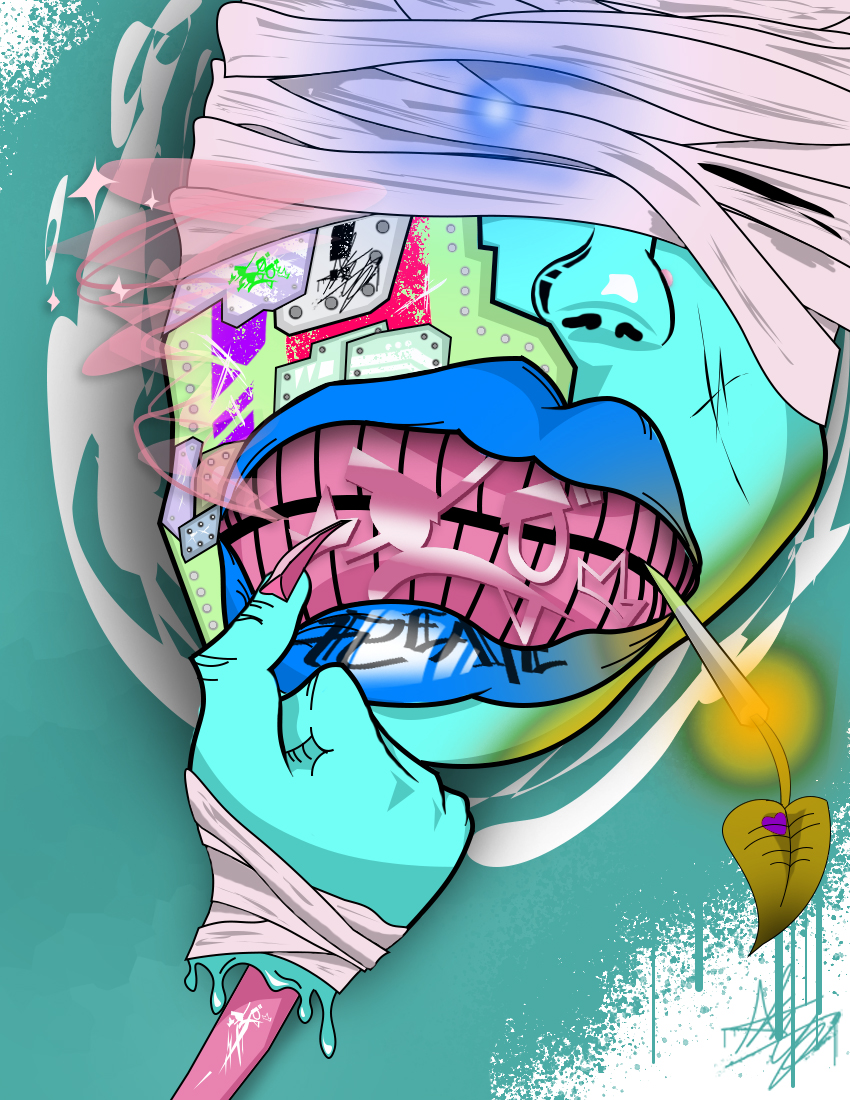 When creating art, my aesthetic revolves around creating visuals that are both “trippy” and “thought-provoking.” As colorful and chaotic as some of my pieces can be, they always have an underlying message behind them.